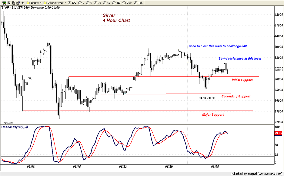 “There seems to be some risk type trades coming back on in today's session as many of the commodity markets are seeing good inflows of speculative money. In this environment silver will generally outperform gold. I should point out however that the buying is not broad based but seems to be selective in nature. Cotton for instance is sharply lower and copper is having some trouble maintaining any gains. On the flip side, sugar, cattle, hogs, corn and soybeans are higher. The weakness in the Dollar along with a generally higher US equities market has encouraged both short covering and new buying in some markets. Ironically, gold is moving lower as the move toward risk has some selling gold with its safe haven role being minimized somewhat.